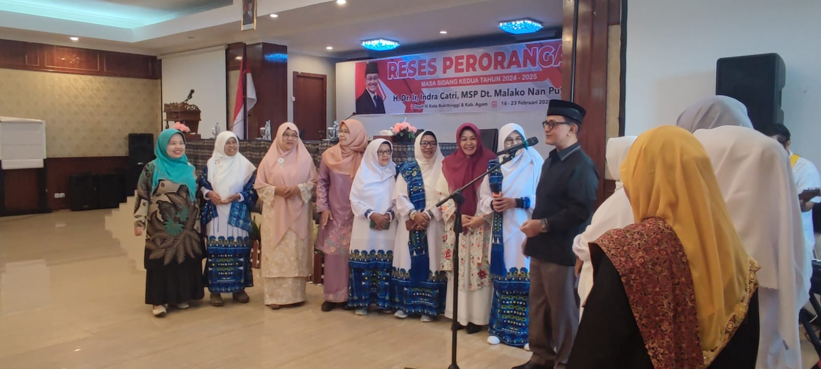 Lubukbasung, kaba12 — Suasana santai dan akrab terbangun dalam reses perseorangan masa sidang II 2025 , anggota DPRD Sumbar Dr.Ir.H. Indracatri,MSP Dt. Malako nan Putiah , di aula hotel Sakura Syariah, Lubukbasung,Sabtu,(22/2).