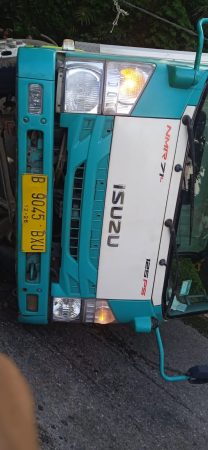 Maninjau, kaba12 — Akses jalan ruas Maninjau- Bukittinggi kembali tersekat menyusul terbaliknya truk dengan nomor polisi B 9045 BXU di kelok 17, Selasa, (16/4).