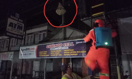Pasar Rabaa, KABA12 — Petugas Pemadam Kebakaran (Damkar) Kabupaten Agam Posko Maninjau melakukan evakuasi sarang tawon tabuan di Pasar Rabaa, Nagari Koto...