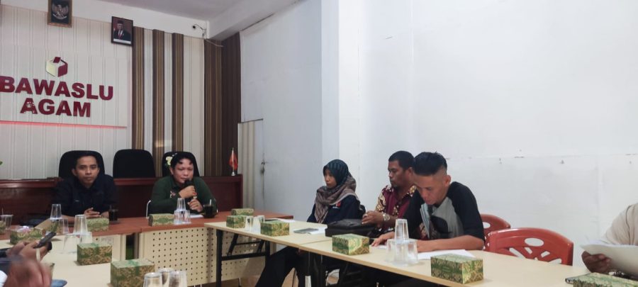 Diskusi Pers yang dipimpin Yuhendra Imam Kayo, Koordinator Divisi Pencegahan dan Humas Bawaslu Agam, didampingi Yuli Zamra, Sekretaris Bawaslu, Buya Mizlin Hardi, Kasubag Pengawasan dan para personil Humas Bawaslu, membahas hal-hal terkait dengan beragam dalam kaitan pelaksanaan Pemilu 2024.
