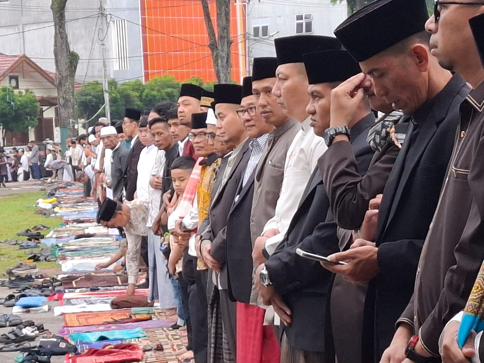 Bukittinggi, KABA12 — Pemerintah Kota Bukittinggi melaksanakan shalat Idul Fitri 1447 H, di Lapangan Wirabraja, Sabtu 21 Maret 2026. Meskipun gerimis, Shalat berlangsung khidmad, dipimpin imam Ustadz Ali Imran dan Khatib H. Ulyadi.