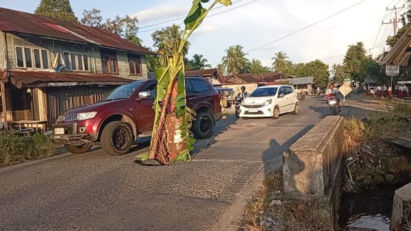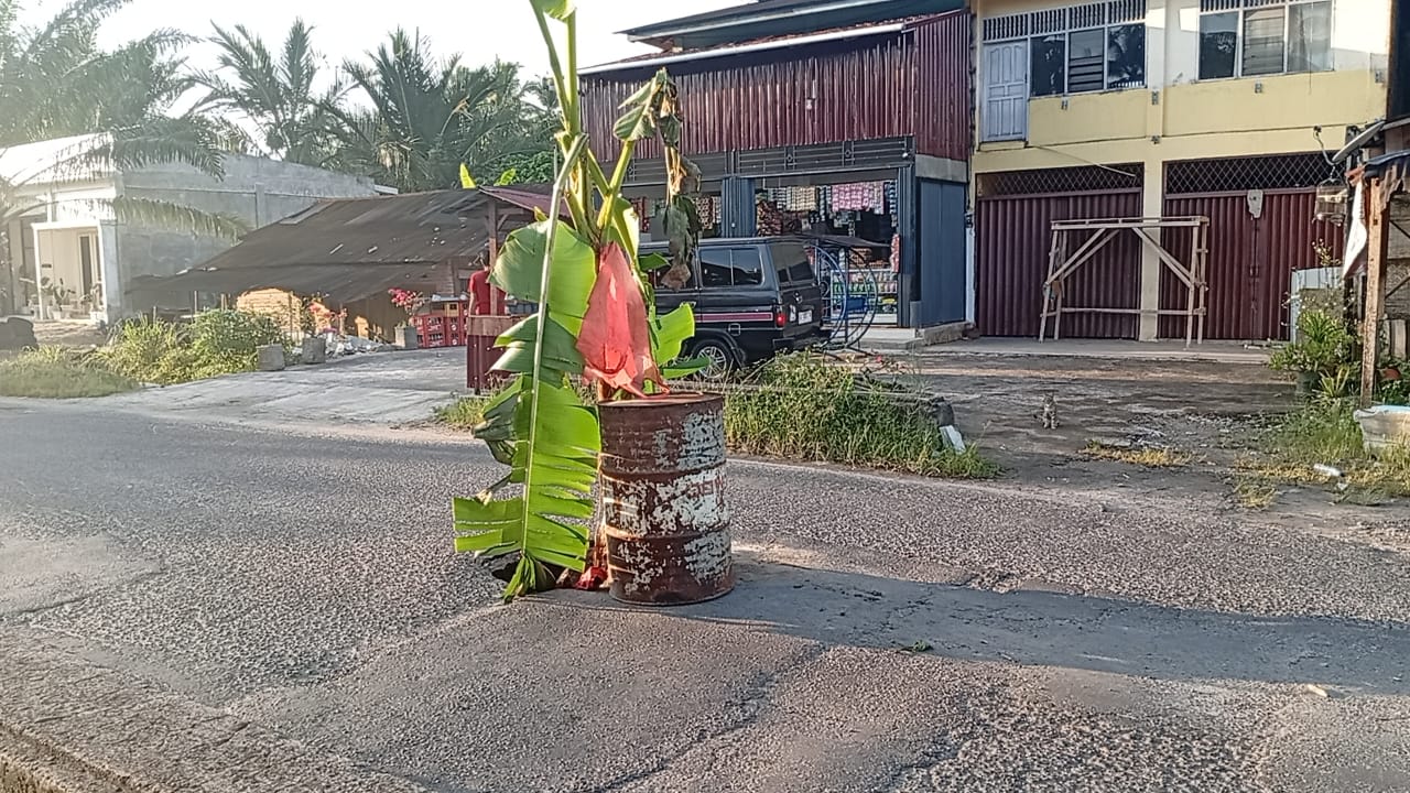 Saat mencek kondisi jalan yang berlobang, tim langsung membersihkan pohon pisang yang ditanam dan memasang rambu pembatas, mengantisipasi dampak terhadap pengguna jalan. Diyakini, perbaikan ruas jalan yang bermasalah di banyak titik tersebut, akan segera dilakukan dalam waktu dekat.