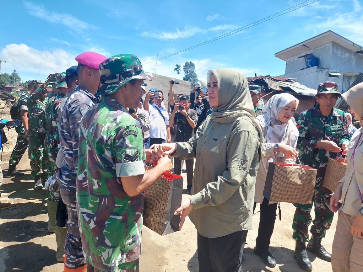 Wujud keprihatinan dan duka mendalam itu, disampaikan Ny.Evi Agus Subiyanto saat mendatangi lokasi terdampak bencana banjir bandang lahar hujan Gunung Marapi, Kamis,(23/5) di Jorong Simpang Bukik, Nagari Bukik Batabuah, Kabupaten Agam, didampingi Ny. Uli Simanjuntak ( Ketua Unsur Persit Kartika Chandra Kirana), Ny. Fera M. Ali. ( Ketua Unsur Jalasenastri ), Ny. Isa M. Tony Harjono. ( Ketua Unsur PIA Ardhya Garini ), Ny. Bertiana Dadi Hartanto. ( Ketua Harian Dharma Pertiwi ).