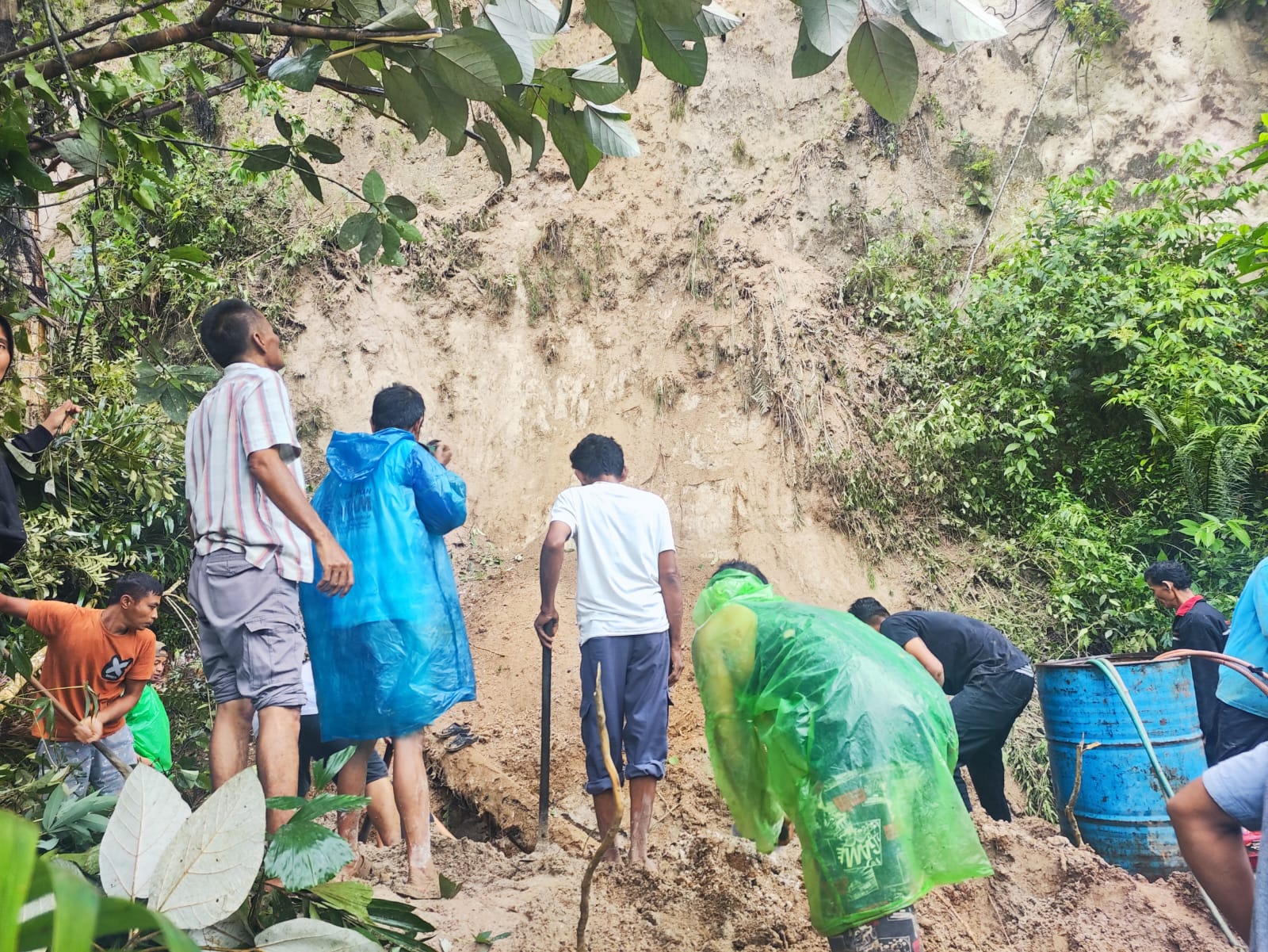 Yang memilukan, akibat hantaman tanah longsor, 2 warga setempat dilaporkan tertimbun material tanah dan batu-batu.