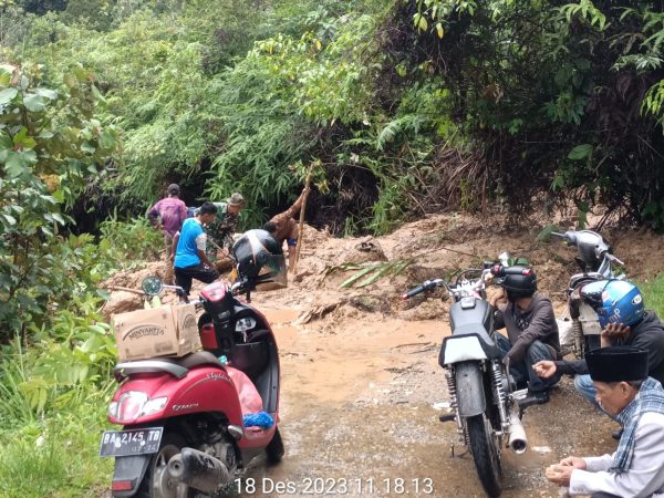 di jalinsum ruas Bukittinggi – Medan Km.10 Jorong Batang Palupuh, Nagari Koto Rantang Kecamatan Palupuh,longsor menimbun badan jalan sepanjang 5 meter ketinggian 2 meter.