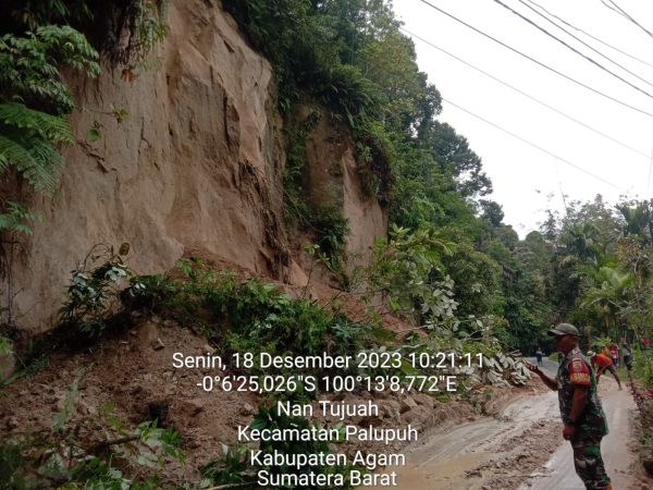 Informasi yang diperoleh kaba12 dari Danramil 12 Palupuah /Kodim Agam Kapten. Inf. Armi Parulian Nasution, dampak hujan lebat di wilayah kecamatan Palupuah menyebabkan beberapa ruas jalan utama terdampak longsor.