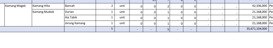 Seperti dijelaskan Roza Syefdianti, Kadinas Komindo Agam, dampak bencana di Kecamatan Kamang Magek, tercatat dari nominal kerugian di Jorong Bancah dengan 2 rumah rusak sedang Rp.42.336.000, di Jorong Durian, Jorong Aia Tabik, dan Jorong Kamang masing-masing 1 rumah rusak sedang (total 3 rumah-red), dengan masing-masing kerugian Rp.21.168.000 (nomimal sama-red) , yang mestinya Rp.105.840.000, ternyata terjumlahkan menjadi Rp.35.671.104.000.