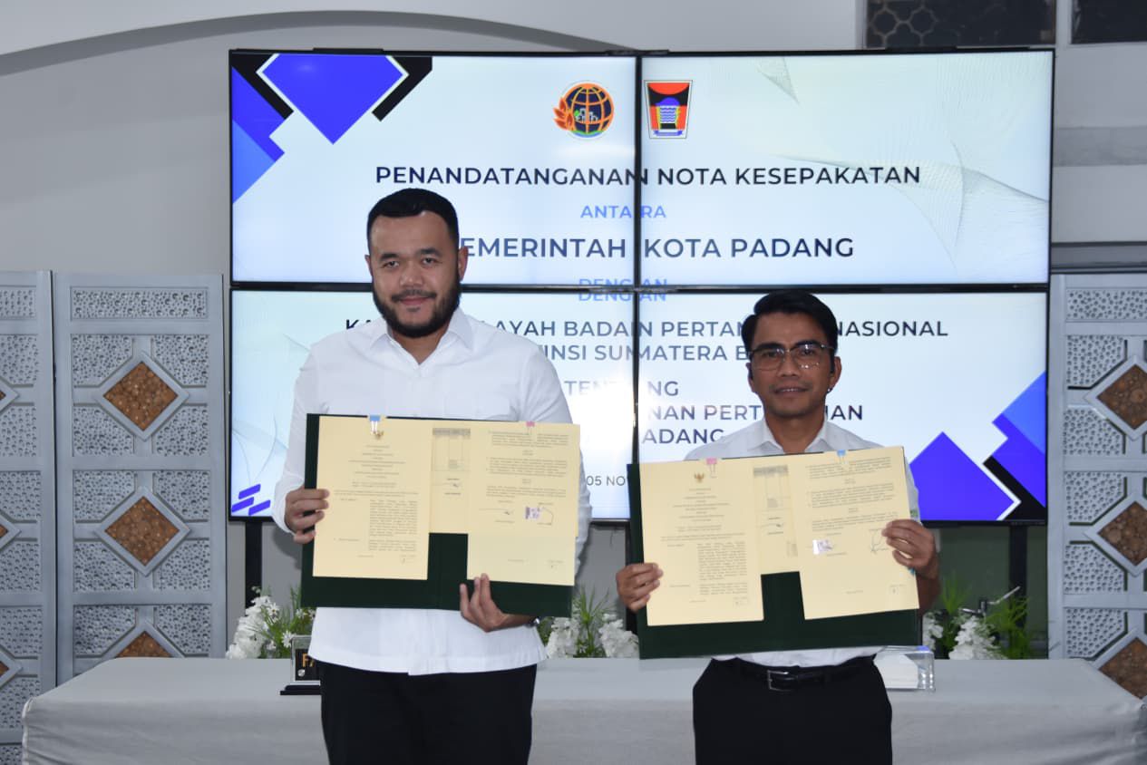 Penandatanganan dilakukan oleh Wali Kota Padang Fadly Amran dan Kepala Kanwil BPN Sumbar Teddi Guspriadi di Gedung Putih Rumah Dinas Wali Kota Padang, Rabu (5/11/2025).