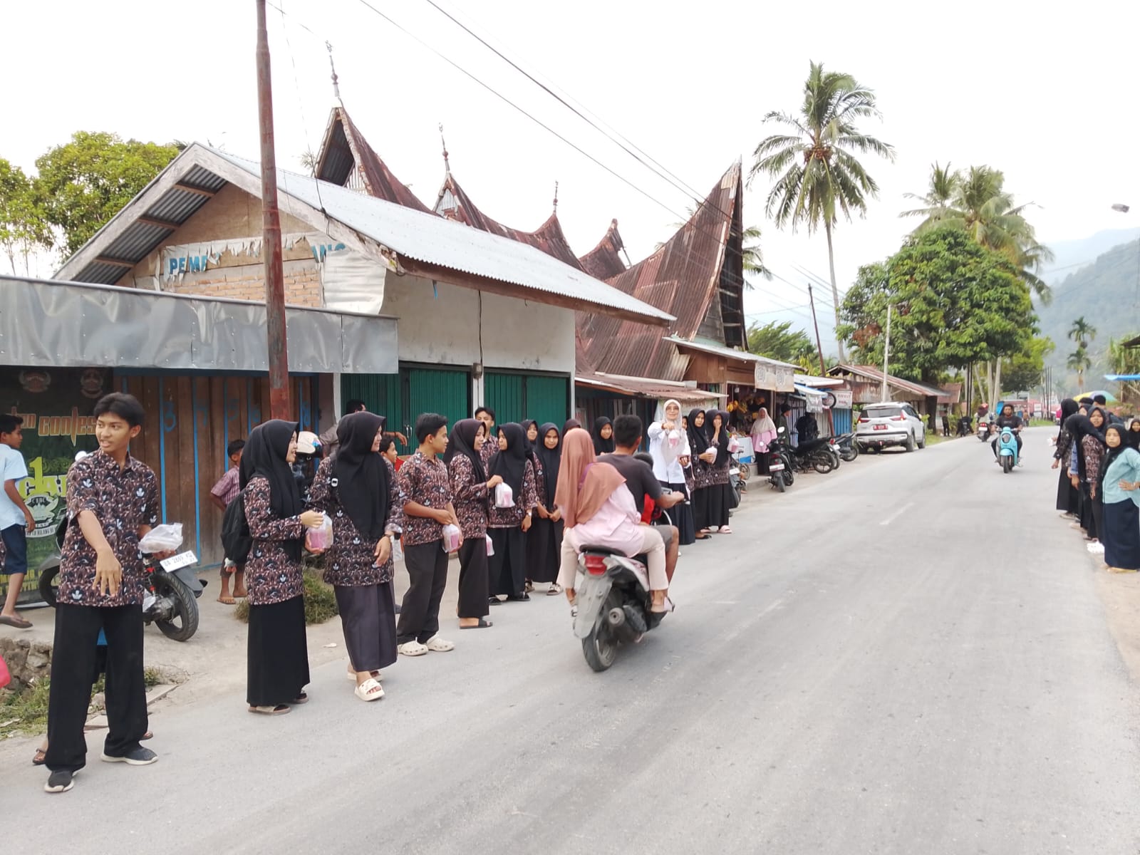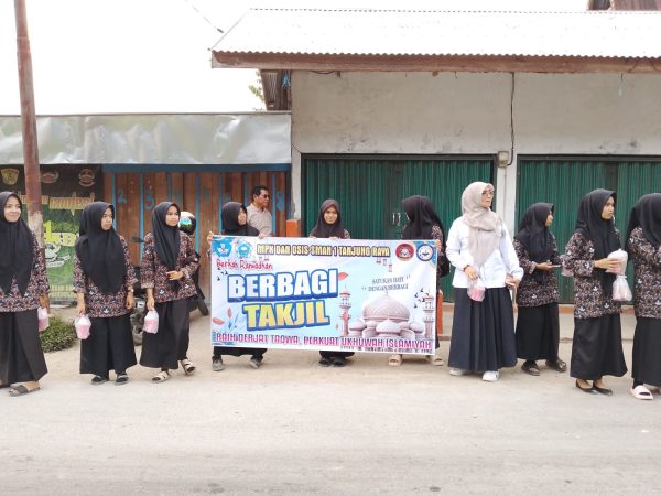 Maninjau, KABA12 — Pelajar SMA Negeri 1 Tanjung Raya tergabung dalam pengurus OSIS dan MPK melaksanakan program berbagi takjil menjelang berbuka puasa, Rabu, (11/3) sore.