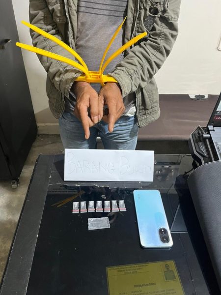 Dari tangan pelaku, petugas berhasil menyita barang bukti berupa 7 paket sabu siap edar yang di bungkus plastik klip warna bening, 1 plastik warna bening, 1 unit smartphone merek OPPO warna biru, 1 unit Sepeda Motor merek Vario techno 125cc warna Kuning dengan Nopol BA 3221 BD.