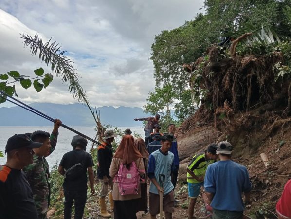 Akibatnya akses jalan utama dari Maninjau menuju Sungai Batang putus total setelah material pohon tumbang disertai longsoran tanah menutupi badan jalan.