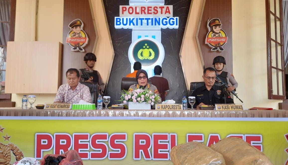 Kapolresta Bukittinggi, Kombes Pol Yessi Kurniati dalam keterangan persnya, Jumat (09/08), menjelaskan, dalam kasus ini Satres Narkoba menangkap dua tersangka, yakni RR (18) dan LP (17). Kedua remaja ini, diduga menjadi kurir barang haram yang di dapat dari daerah Penyabungan.