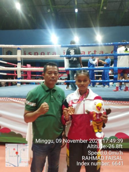 Jakarta,kaba12 — Petinju asal Kabupaten Agam Dinda Fahmi Rahmadani, raih medali perunggu cabang olahraga tinju dalam event Pekan Olahraga Pelajar Nasional (POPNAS) 2025 di Jakarta.