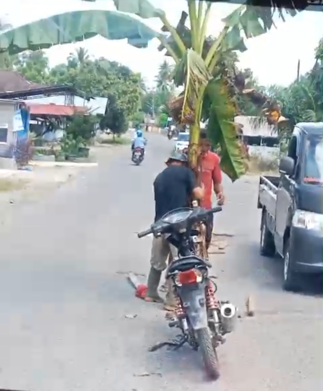 Protes Jalan Tak Kunjung Diperbaiki, Warga Tanam Pisang di Jalan Provinsi