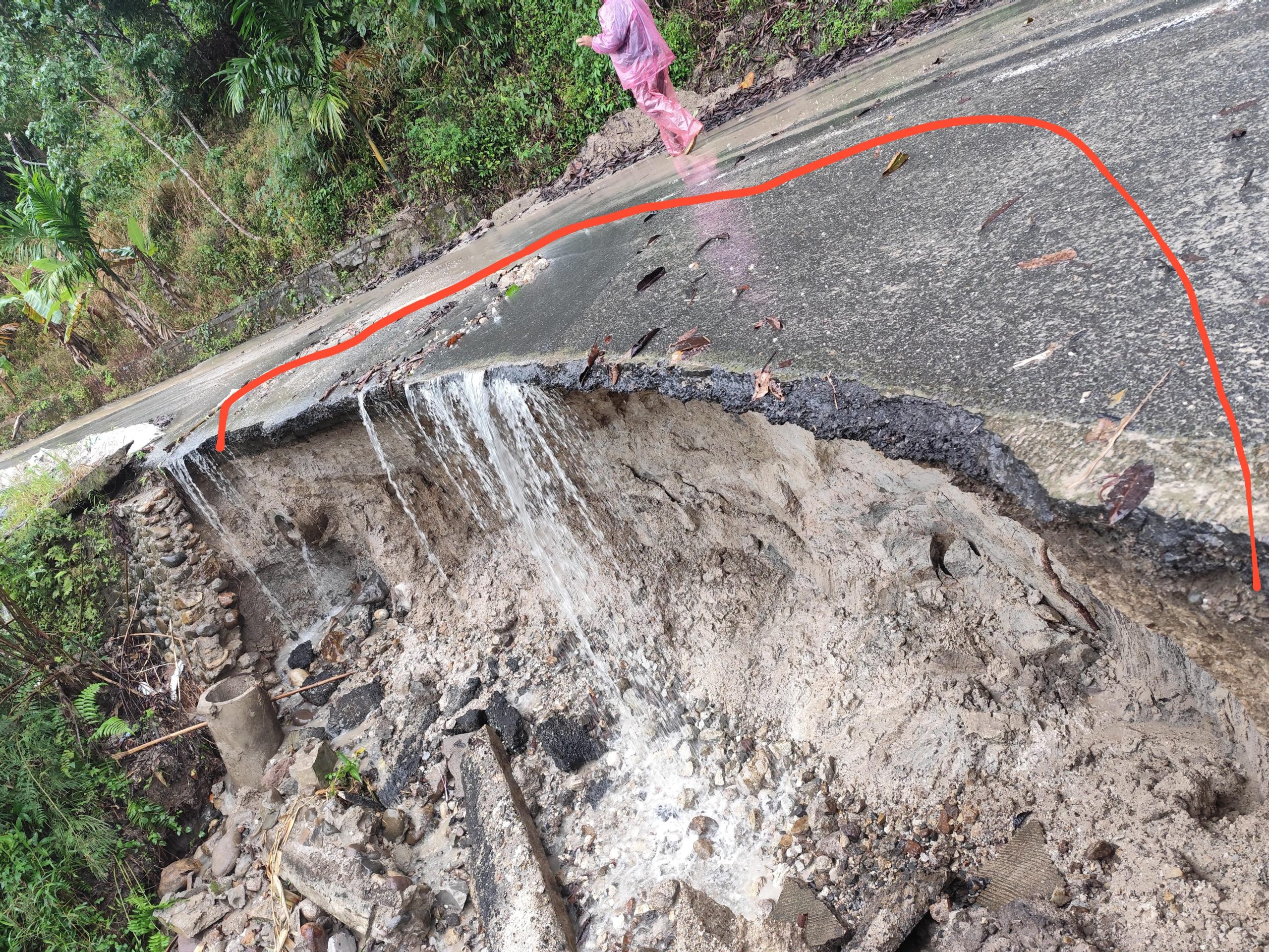 Pantauan kaba12 di lapangan terlihat bahu jalan telah amblas, bagian bawah badan jalan juga sudah tergerus aliran air, sehingga struktur jalan menjadi rapuh dan sangat membahayakan pengguna jalan yang melintas di kawasan itu.