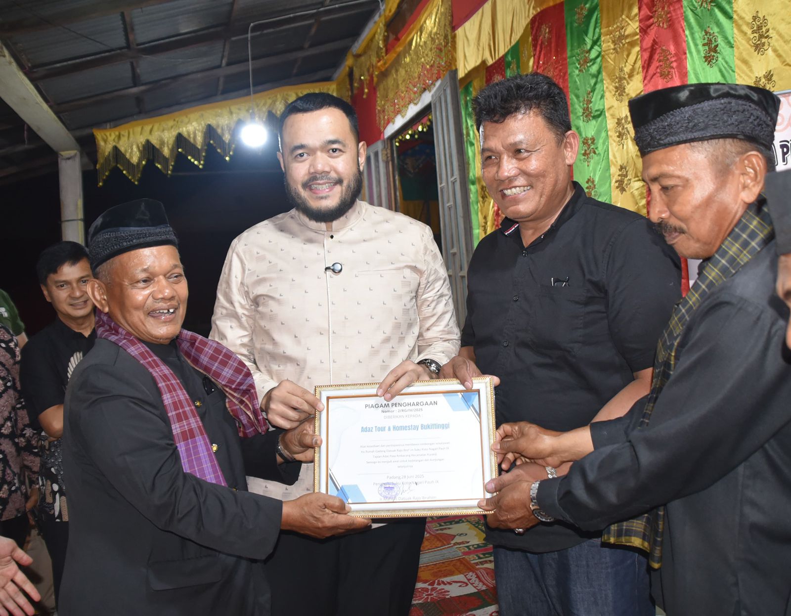 Padang, kaba12 — Wali Kota Padang Fadly Amran menyambut kedatangan rombongan Percutian MGB Petaling Izfar Travel Malaysia, di Rumah Gadang Datuak Rajo Ibrahim, Kelurahan Pasar Ambacang, Kecamatan Kuranji, Sabtu (28/6/2025) malam.
