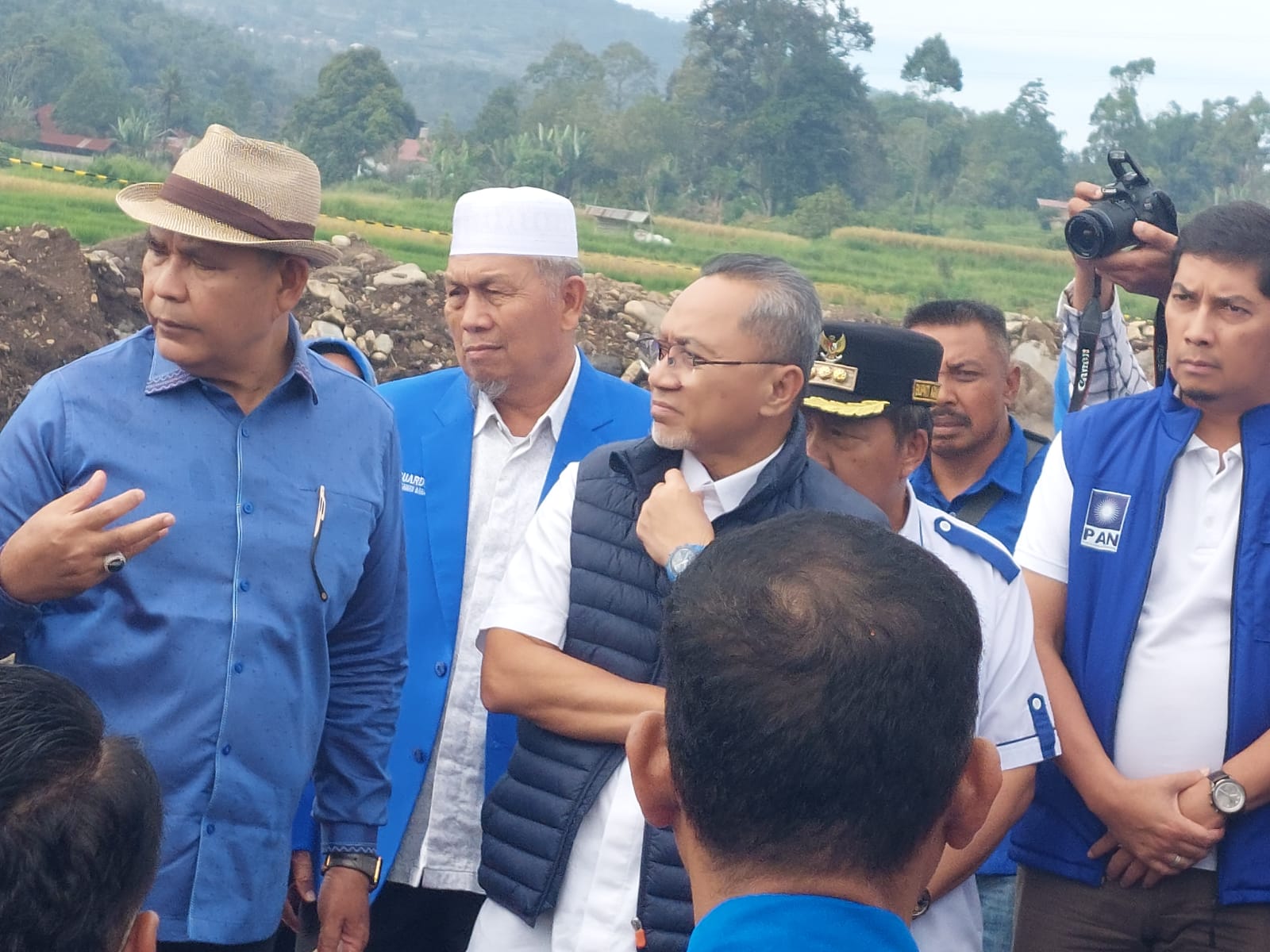 Kunjungan Mentri Perdagangan Zulkifli Hasan untuk melihat langsung kondisi masyarakat yang dihantam galodo lahar hujan Gunung Marapi, di Bukit Batabuah Kecamatan Candung didampingi Bupati Solok Epyardi Asda, Anggota DPR RI Asli Khaidir, Pj Wali Kota Padang, Bupati Pasaman Barat, Ketua DPW PAN Sumbar, yang disambut